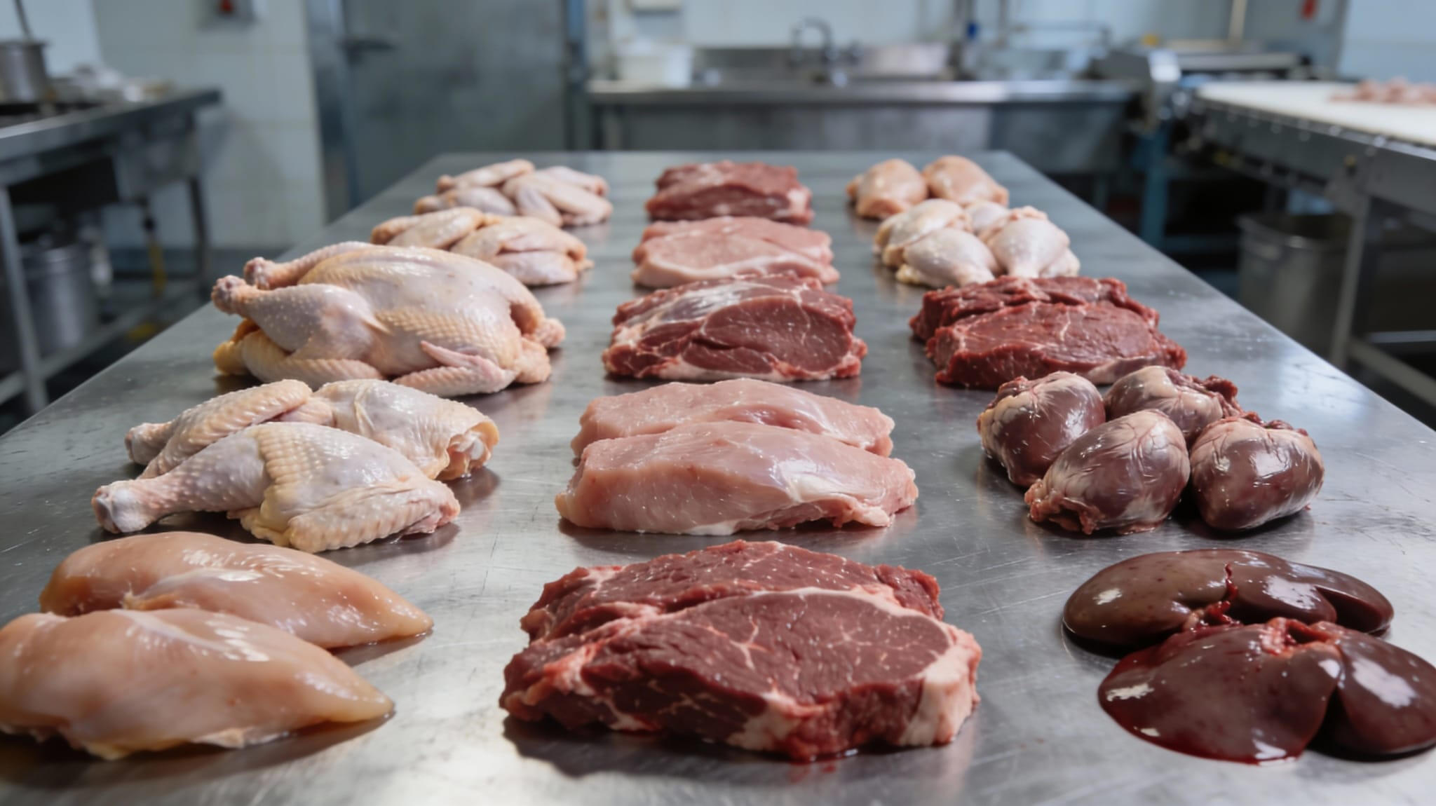 INKOPET product portfolio covers a wide spectrum of animal species, allowing customers to design multi-species formulations and tailor raw material profiles to different nutritional and processing needs. Core lines are based on poultry (chicken and turkey) and waterfowl (duck and goose), complemented by substantial volumes of pork and beef raw materials that include both muscle-adjacent cuts and a full range of organs.